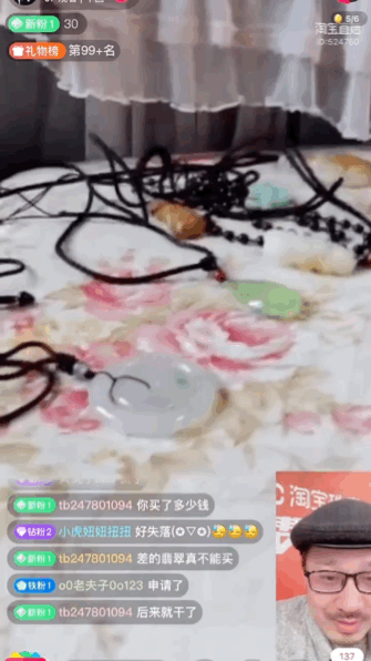 “您把玉佩放在镜头前,缓慢得转一转。”淘宝店“珠宝鉴定师丨李老师”的店主李玥琪一边凑近屏幕端详,一边远程指导粉丝们展示手上的珠宝。