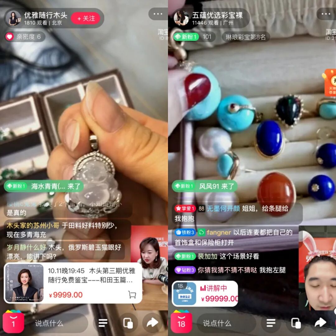 淘宝珠宝在直播中表现让人无法忽视。《双11淘宝直播商家数据报告》显示,它是淘宝直播里渗透较高的类目之一。原先线下为重,如今又乘坐上了直播这列快车,珠宝逐渐加速了创新线上玩法的脚步。