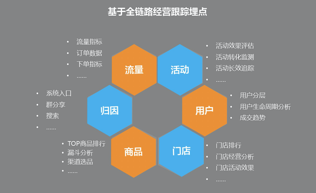 「新零售云店」直接对接腾讯有数,从流量/归因/商品/门店/用户/活动等多维度进行全链路经营数据跟踪,帮助商家获知自己微信生态内的经营状况,并提供基于数据挖掘的深度服务。