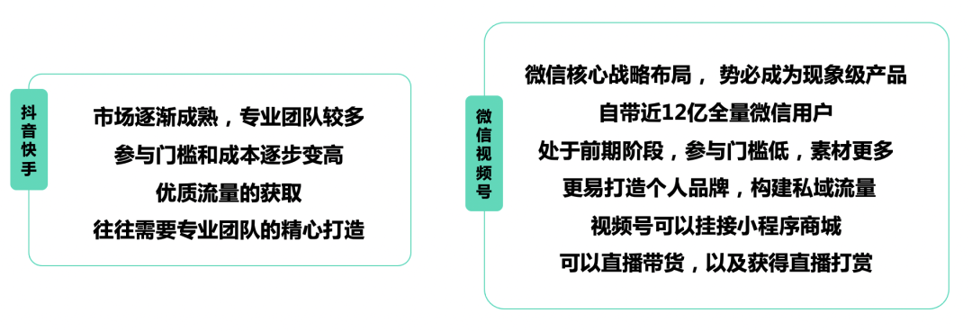 相比于微信公众号需要的专业运营,抖音号0粉丝启动,视频号作为关联个人微信的短视频媒体,借助已有的近千和过千的微信好友,微信社群等。大部分人拿起手机拍个段子发布到视频号,都可以开展内容营销,有生意头脑的朋友则开始尝试短视频带货,有趣有口才的人可以尝试开直播获得打赏。