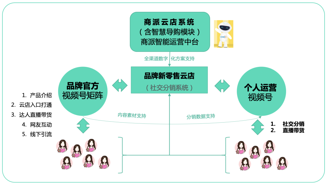 2、搭建分销渠道:搭建品牌官方新零售云店,开放商品的社交分销功能,连接到视频号;