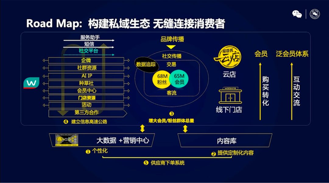 屈臣氏在不断的扩充新的边界,增加跟消费者的关联,提升消费者的数量。同时,屈臣氏打造了更多的信息高速公路去连接,和消费者发生更多的关联。