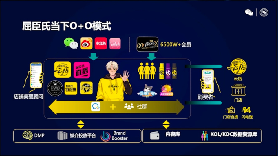 屈臣氏云店的O2O的模式很大程度上帮助他们解决了消费需求洞察等问题。屈臣氏把DMP系统(大数据管理系统)与企业微信打通,门店导购可以通过大数据收获更完整的用户画像、更精准地了解顾客的喜好,并针对性地提供服务辐射需求,这些服务可能包括为顾客推荐商品、发放优惠券以及预约门店化妆护理等,用以进一步加强用户粘性。