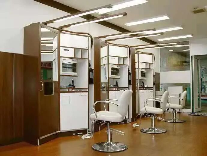 比如室内有三套理发的组合柜,供理发师使用,配套的设施都是可折叠的。