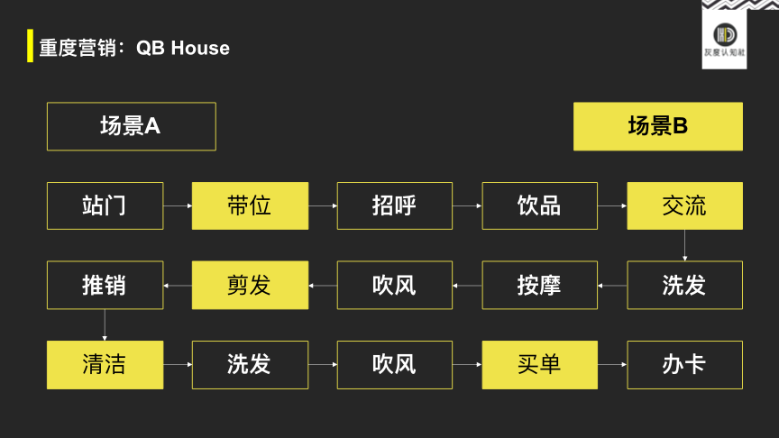 QB house从中选取5个环节进行优化,带来全新的客户体验。