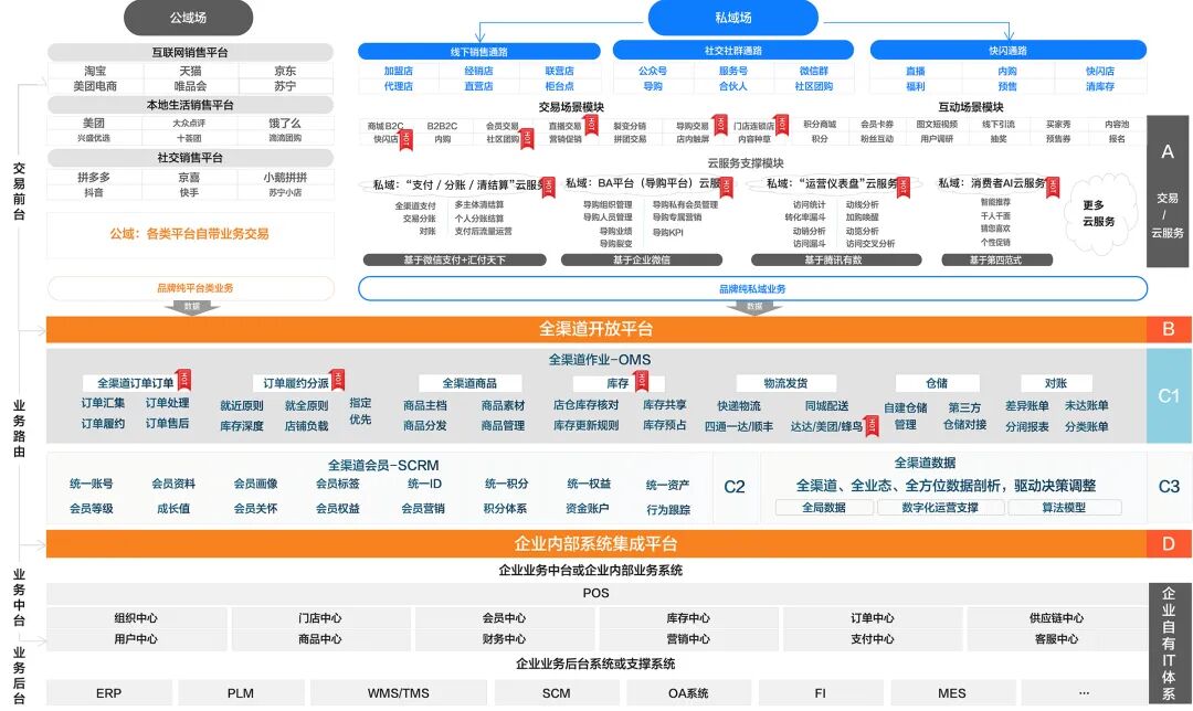 商派oneX平台已经对接了近百个外部销售平台,实现了企业全渠道一盘货经营,全渠道会员身份统一识别,以及多层级经销商在线化赋能;并提供集成中间件服务,集成和对接品牌企业内部业务IT系统,实现全渠道业务闭环,支撑品牌零售企业迅速实现数字化转型。