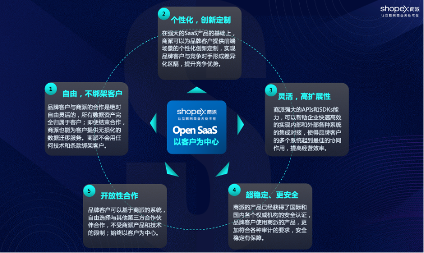 品牌企业在商业计划中要建立系统敏捷性、先进性,必须要让系统适应业务的发展,而不是让业务适应系统。通过系统和技术进行个性化定制,放大品牌差异化价值。从多个层面持续提升客户的购物体验。这正是商派Open SaaS(开放式SaaS)服务模式的优势所在。