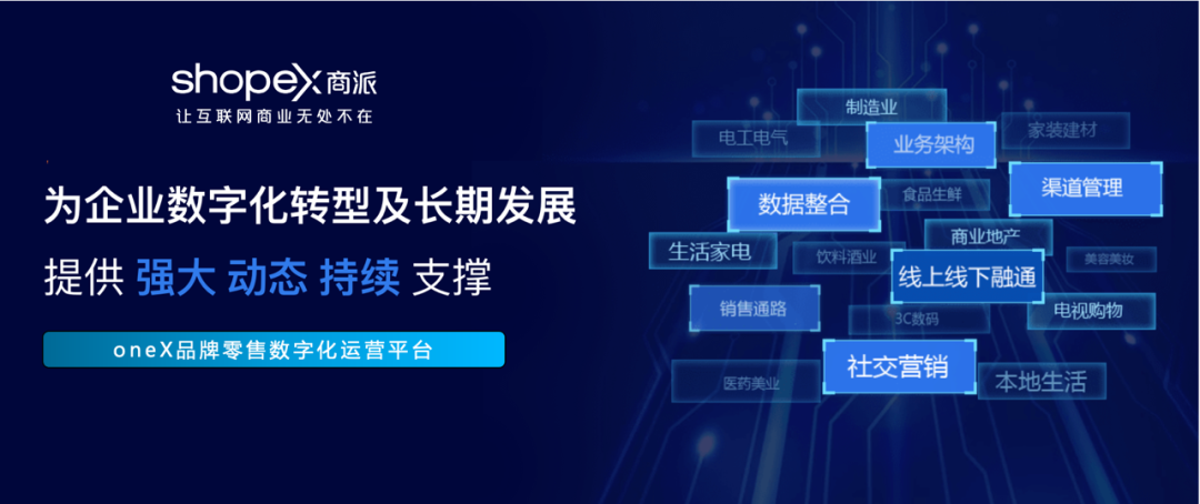 随着近几年数字化产品和平台的迭代升级,商派又重新定义了oneX平台——即品牌零售数字化运营平台。