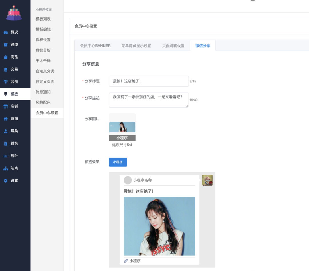 3、微信分享(会员中心)内容配置