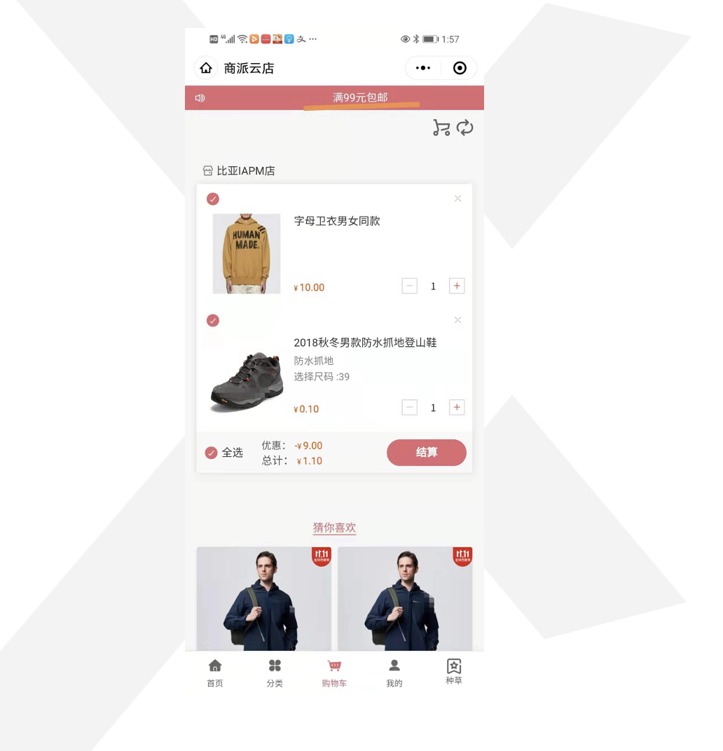 购物车提醒开启后在购物车顶部展示配置的内容,跑马灯形式滚动展示。