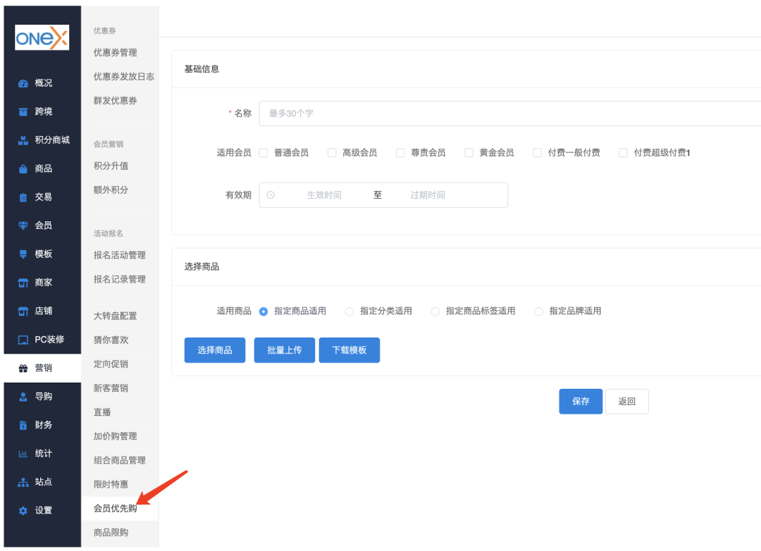 活动生效后,只有指定会员等级用户才可购买商品