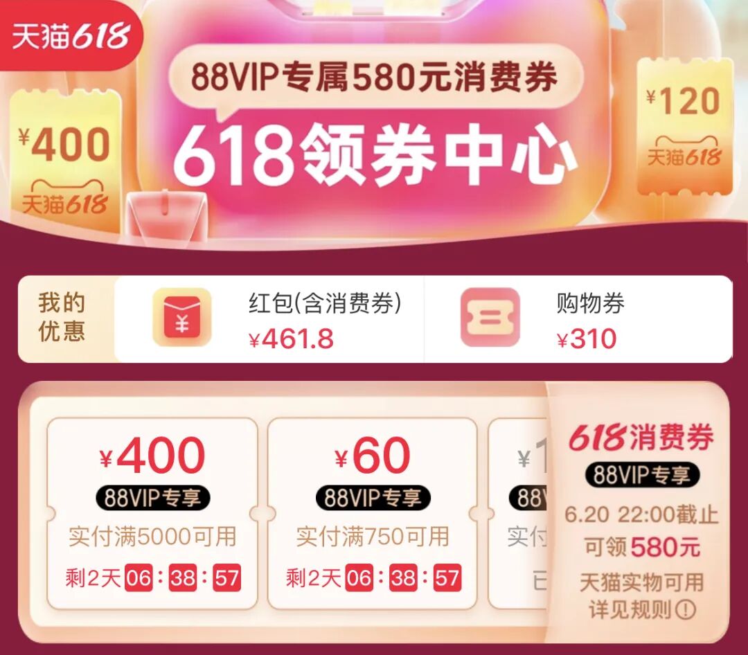 “会员专属优惠券”、“会员买赠”、“会员优先购”……刘畅发现,不同以往的618要计算满减、限时抢购,今年很多品牌的优惠都打上了“会员”的烙印,一番注册下来,自己彷佛在尊贵感中体验了被“偏爱”的优惠。