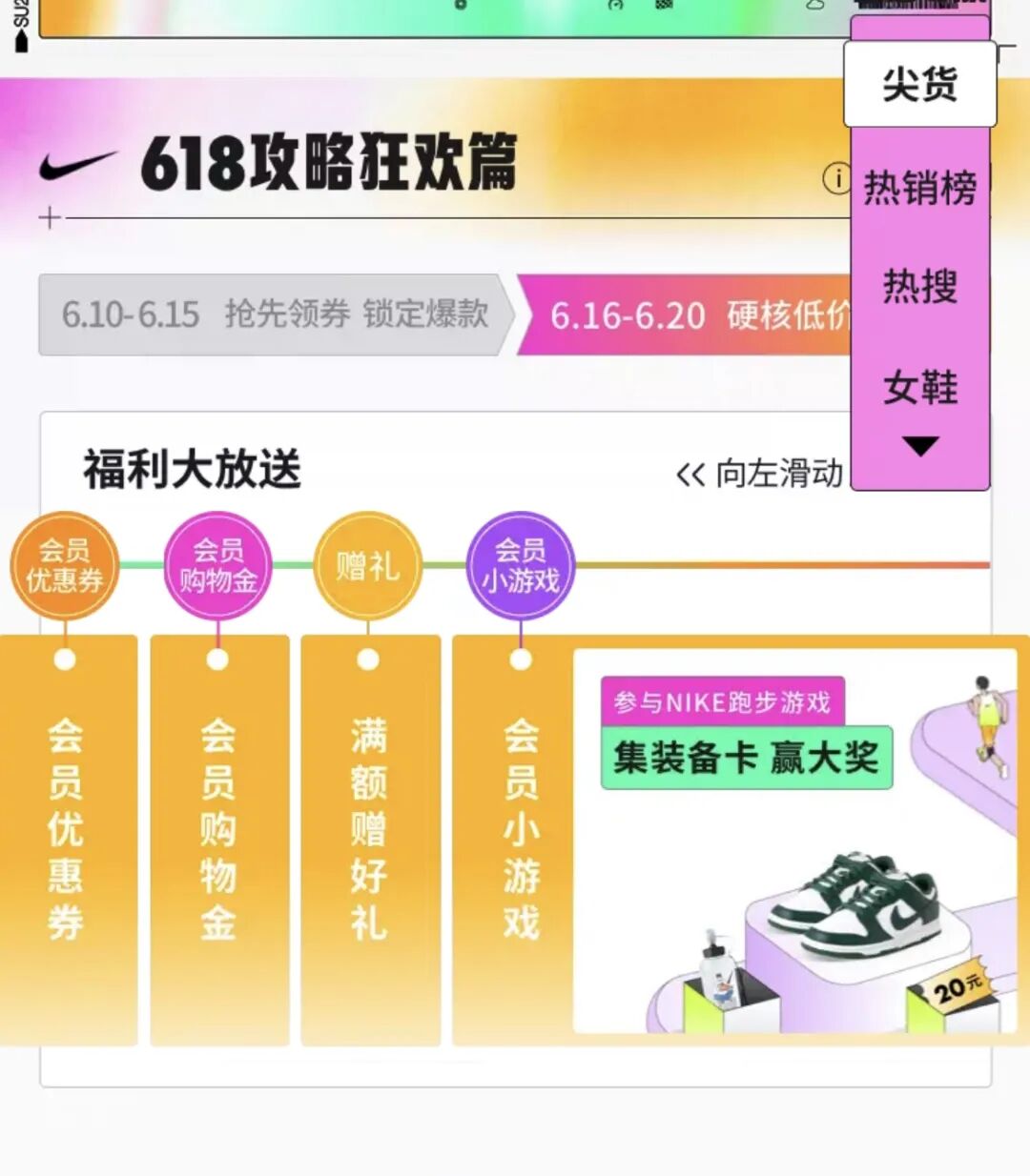 而品牌店铺在拉新会员这件事上,显得更多元。「电商在线」发现,打开店铺,都在突出“会员优惠”,并且还会相应分层,新会员和老会员享受不同的优惠力度。除了传统的派发会员优惠券,还针对不同行业类目,比如Nike、乐高等潮流圈层的品牌,有针对爆款开放“会员购”,美妆有会员加赠小样,还有会员小游戏和积分挑战等活动。