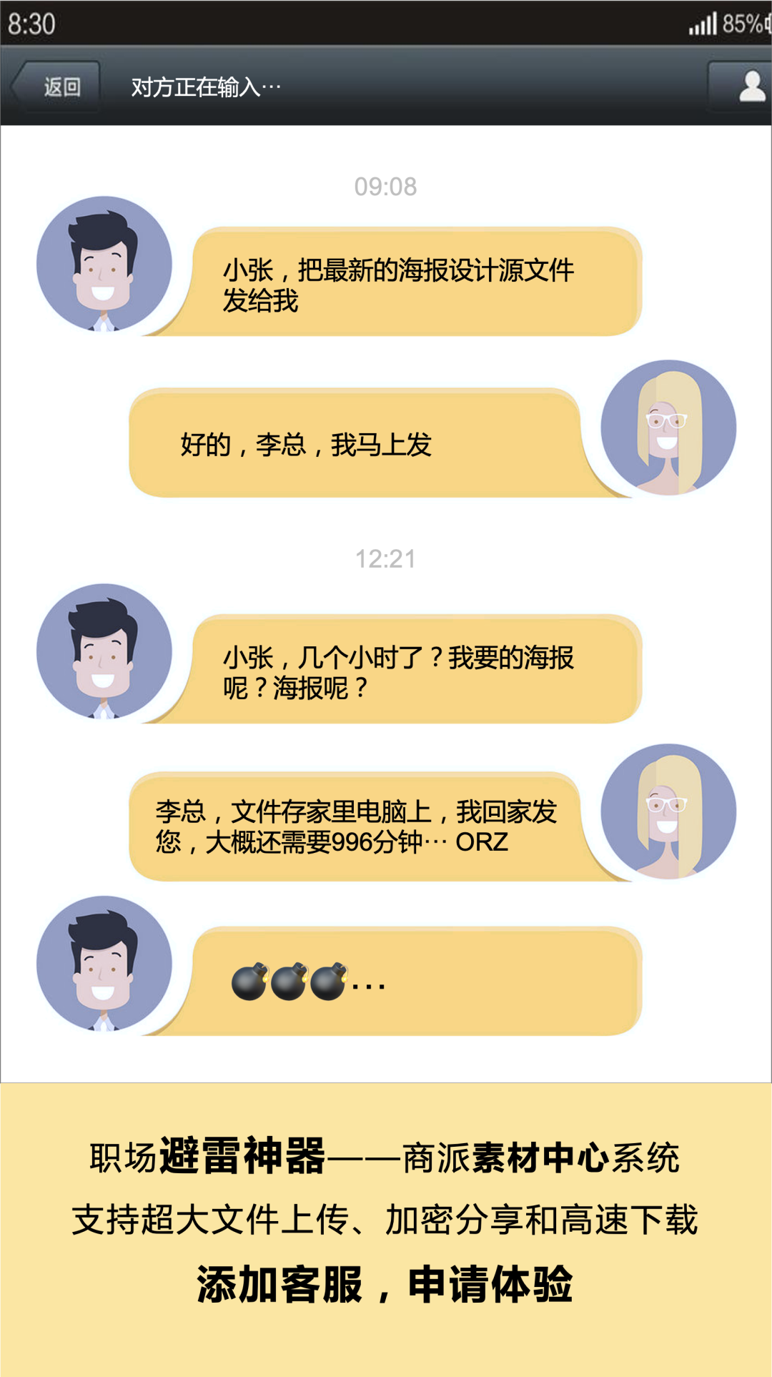 企业员工每天都与各种文件打交道,通过邮件、通信工具传输时,由于文件过大,极易导致发送时间过长,传输速度慢等问题,直接降低了工作效率。