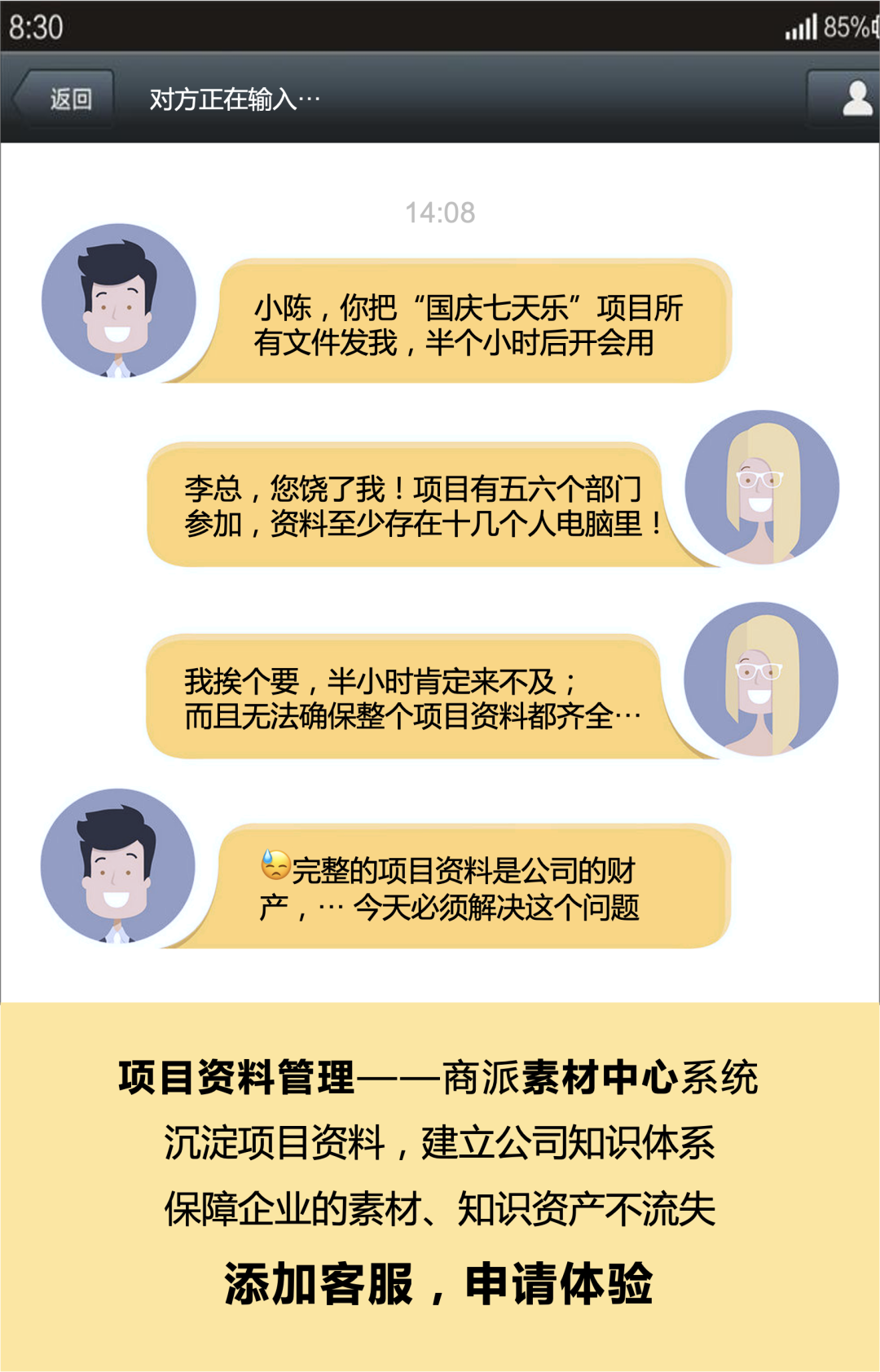KA级企业,由于体量大,业务线多,并且由于历史原因,企业内部没有建立自己的知识体系,所有文件散落在个人电脑中,当需要查找或使用其中的文件时,会出现找不到、沟通难等问题。
