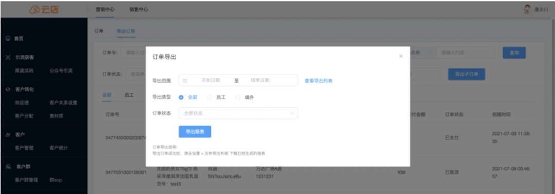 2、新增商品维度订单报表导出