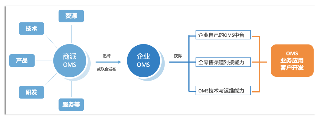 商派白标OMS业务是指,整合商派的技术、资源、OMS产品、研发与服务能力等,以打包、贴牌的OEM或ODM方式,与其他企业达成合作。达成合作的企业将会拥有自己的OMS中台产品,获得商派完整的OMS能力,包括全渠道零售对接与技术、运维服务能力。如果合作方没有技术基础,也可与商派联合发布新的OMS版本,并由商派提供所有的技术、运维、二次开发或新功能研发的服务。