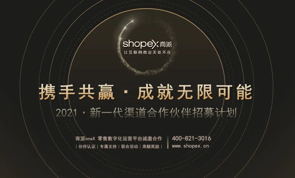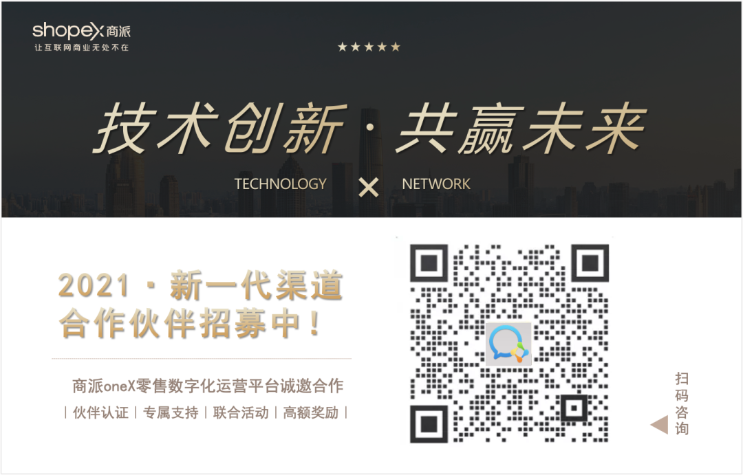 在贯穿整个2021年乃至2022年的伙伴招募计划的倡导下,商派将与渠道合作伙伴一起迎接全新竞争格局下的新常态,通过属地服务体系建立全新的竞争优势,一起为客户在云端构建真正基于零售市场消费的业务体系,共同把握未来的发展机遇。