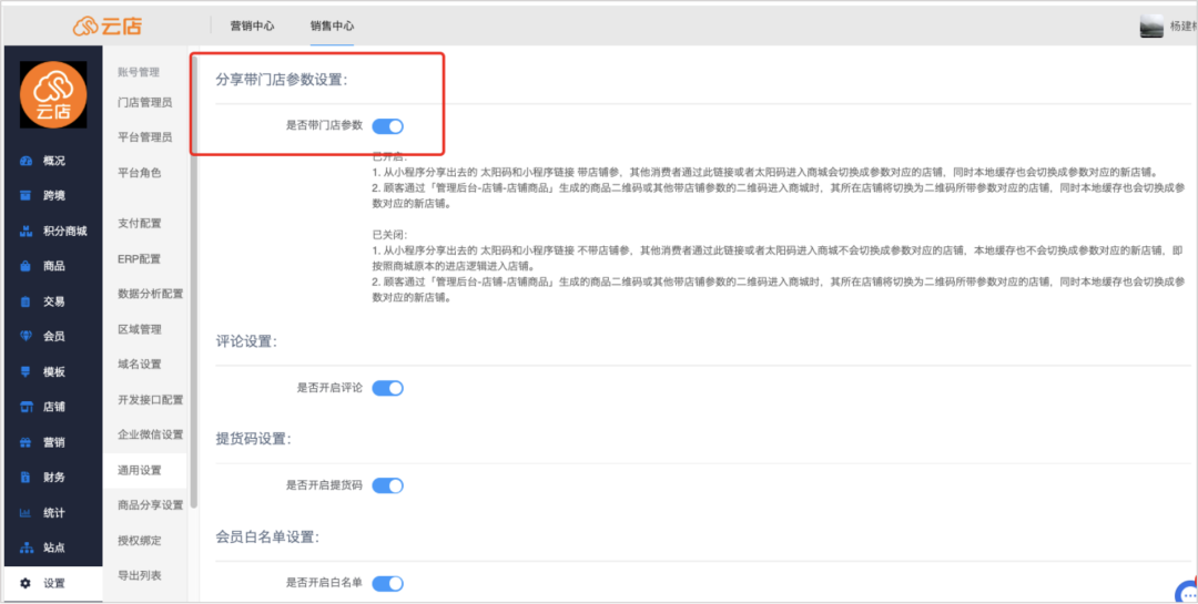1). 从小程序分享出去的 太阳码和小程序链接 不带店铺参,其他消费者通过此链接或者太阳码进入商城不会切换成参数对应的店铺,本地缓存也不会切换成参数对应的新店铺,即按照商城原本的进店逻辑进入店铺。