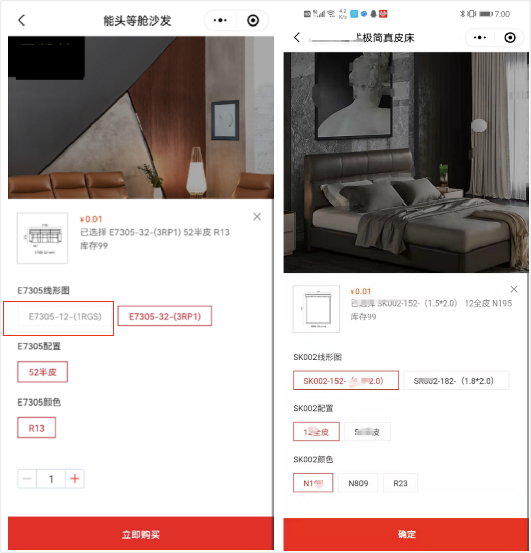 4、多规格商品中含有不可售商品规格,置灰且不可选;