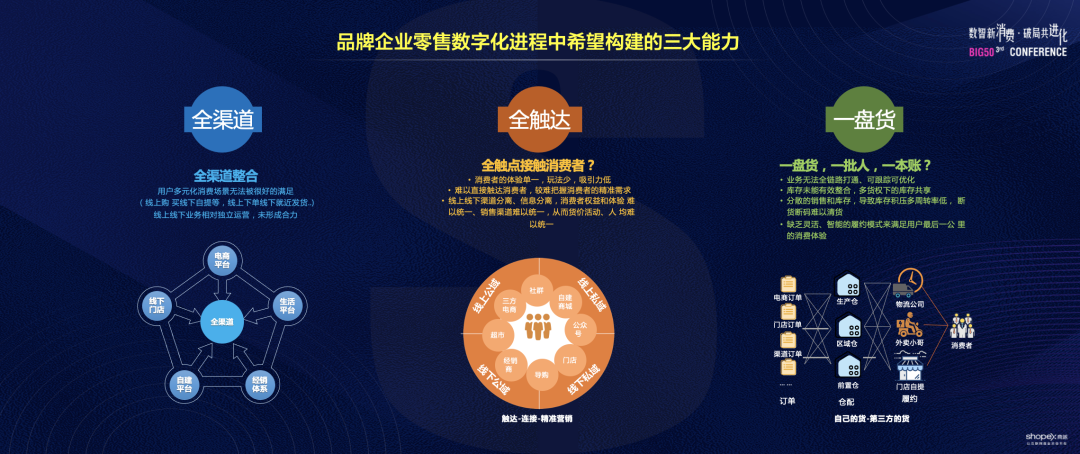 计三勇认为,无论各大平台怎么说怎么做,对于企业而言,未来他们要做的很聚焦三件事就是:全渠道、全触达和一盘货(一本帐、一群人),商派的探索创新也基本上围绕这三大点展开。