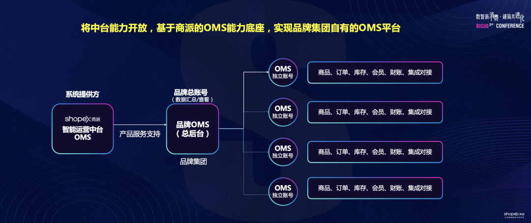 另外还有两个创新,一个是商派基于自身沉淀的OMS能力或者中台能力,又延伸出了OMS白标业务,即将商派的OMS能力全面赋能给集团企业或者其他数字化服务商,让品牌自己去构建一个有自己LOGO的OMS平台,再向下赋能经销商。目前OMS白标业务已经合作了几个集团企业,反响都很好。