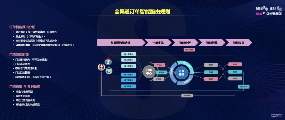 在中台产品线,商派继续夯实中台产品的能力,在“全渠道库存共享”、“全渠道订单路由”、“全渠道售后服务”和“财务统计报表”等方面沉淀了很多成功的解决方案。