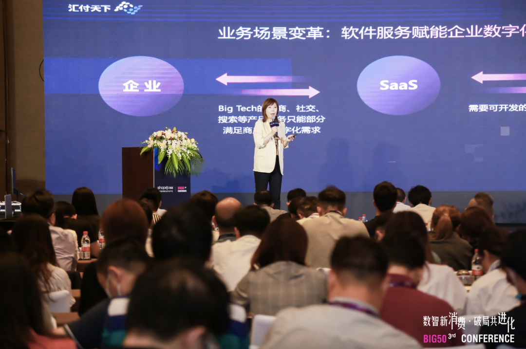 零售是门生意,做生意就离不开支付和算帐。第三位上台分享的是汇付天下总裁穆海洁女士。 穆女士分享了《支付数字化下一站-平台助力,共建生态》等精彩内容。穆女士指出中国的支付市场已经进入到了一个多元化的时代,汇付天下联合商派这样的数字化伙伴,在ToB支付解决方案的路上做了很多探索创新,已经形成了不同行业的解决方案,基于汇付天下的平台,可以为企业高效赋能。