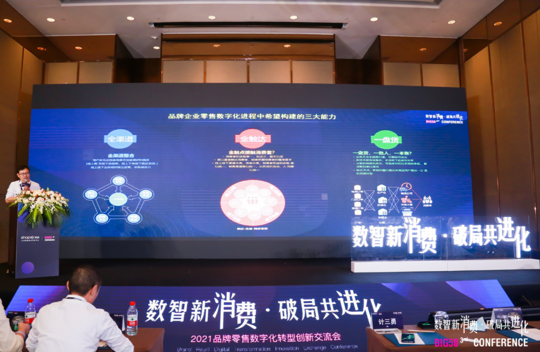 当抖音和支付宝两大平台相继分享完之后,重磅登场的则是商派副总裁计三勇。计三勇为所有品牌企业汇报和解读了商派在这一年具体做了哪些探索和创新实践。