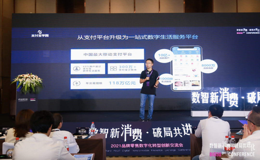 会议下半场,支付宝品牌零售&综合体行业生态合作总经理李锡春为大家分享《数字生活升级下的品牌流量新机遇》。