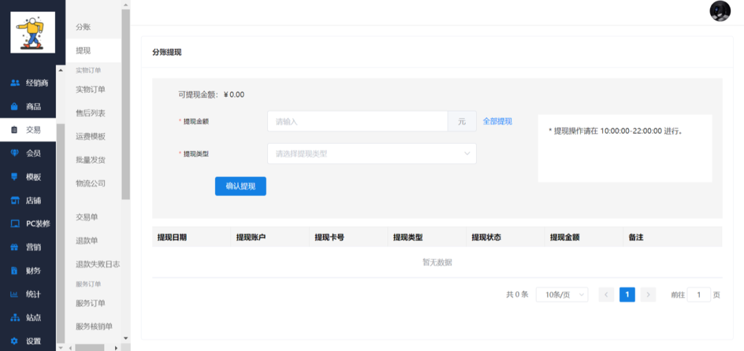③店铺分账金额=订单金额-手续费-总部分账金额-经销商分账金额
