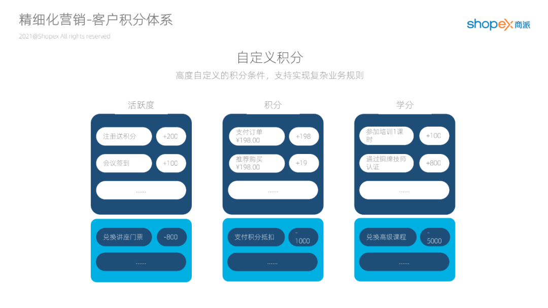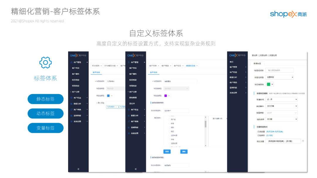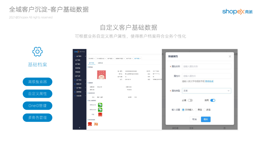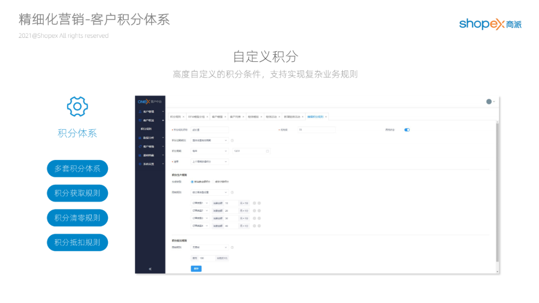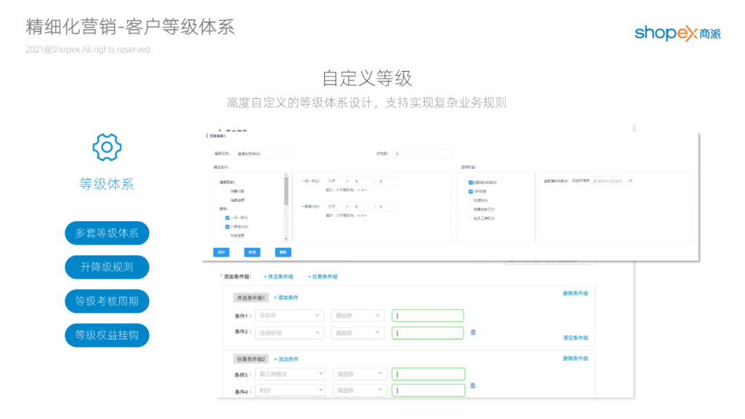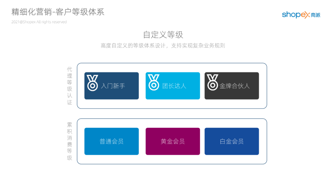 支持一个自然人设置多套用户客户体系,包括:多角色,多等级,多积分。使得同一客户能在各业态中活跃的情况下能被统一管理