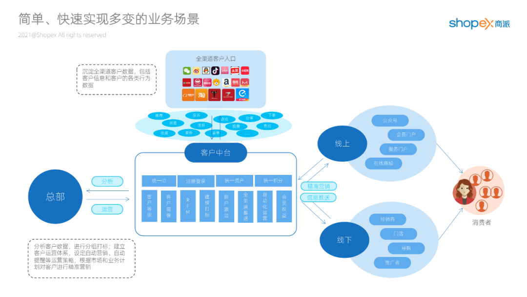 为了解决以上问题,商派客户中台在结合众多品牌客户需求的基础上诞生。