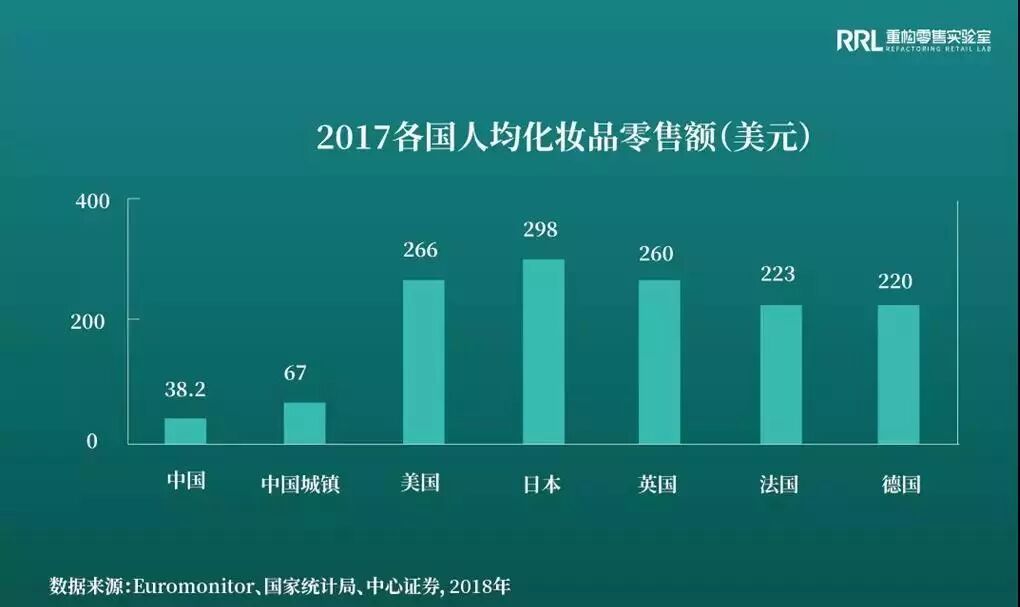 从行业报告中不难发现,美国化妆品单品价格超过200元以上的高端产品市场份额已经接近40%,且高端化妆品市场占比呈现出明显的上升趋势。中国高端化妆品的市占率也在逐年提高,但目前距离美国高端化妆品占比仍有10个百分点左右的差距。