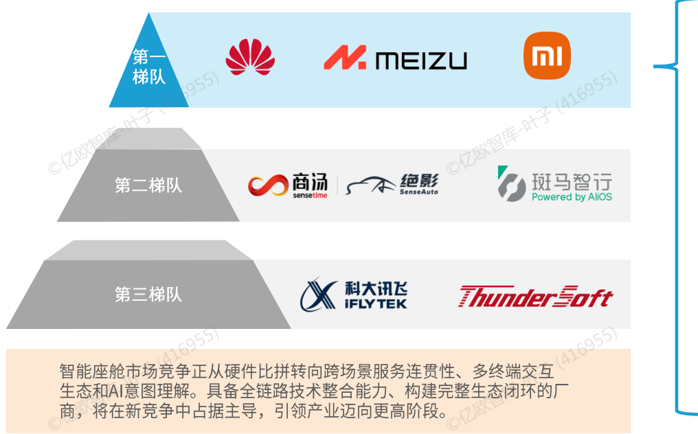 在智能座舱产业的激烈竞争中,”华小魅”阵营(华为、小米、魅族)凭借差异化战略构筑起坚实的竞争壁垒,共同奠定了行业第一梯队的核心地位。