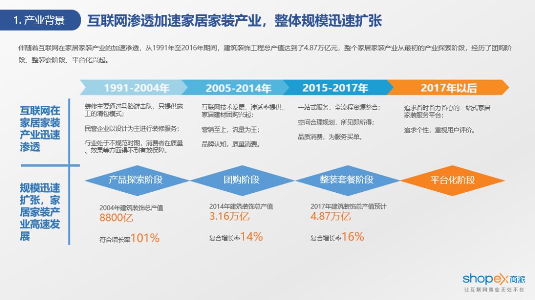 仅仅按照传统逻辑来进行家装行业的玩法,正在失去市场。以新零售所裹挟着的新技术,让我们看到了对家装行业进行再度改造的可能性,以平台赋能为突破口,商派致力于为家装开启新零售时代的进化之路。