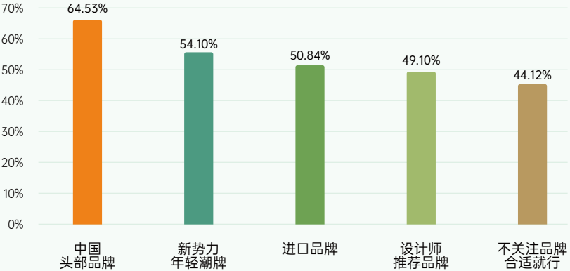 在选择材料时,60.37%的设计师重点关注材料的健康环保认证,52.29%选择“小众个性品牌”,略高于选择“国际或国内知名品牌”的49.06%。