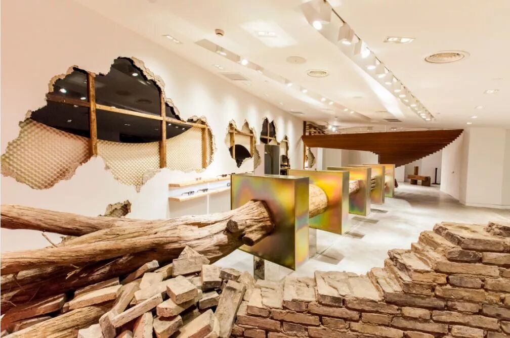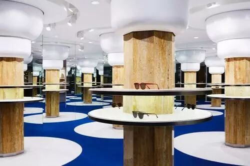 店中的各种装置艺术,大小不同、动静不一,有些通过空间隔离,有些通过光影区分,带来视觉和体验的双重震撼,其震撼来源是因为它是一家眼镜零售店,而它所做的却似乎与销售没有关系。