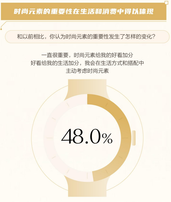 腕部以91.6%的投票率成为消费者提升时尚感的关键部位,46.1%的消费者认为其重要性“显著提升”。智能手表凭借其多场景适配性(51.7%)和情感陪伴属性(42.7%),成功将功能性产品转化为情感化配饰。