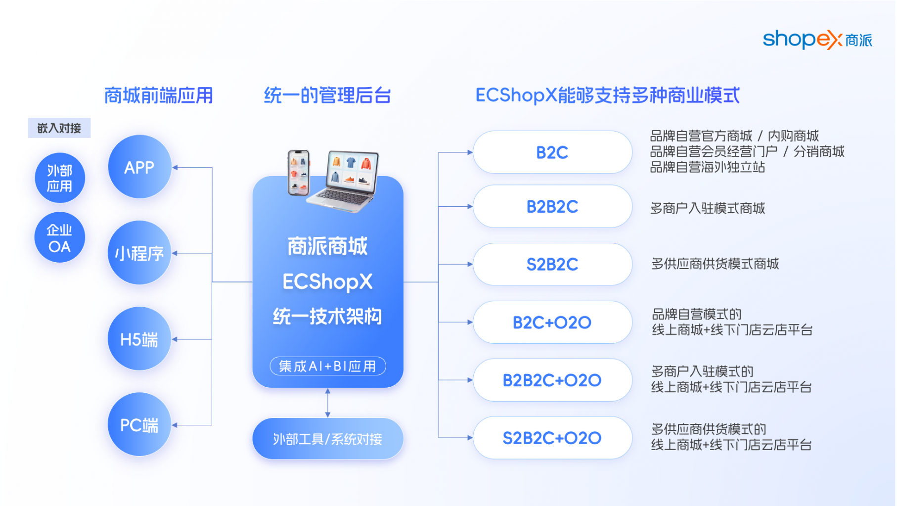 其商业模式丰富多元,突破传统局限。B2C/DTC 模式助力企业构建直接面向消费者的销售体系;B2B2C 多商户入驻模式适合打造行业垂直平台;S2B2C 多供应商供货模式优化资源配置;创新 O2O 融合模式打破线上线下界限,实现商品、库存共享等,为消费者提供无缝购物体验。