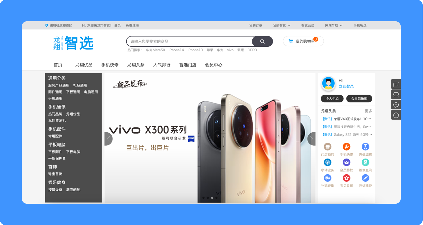 龙翔智选的诞生源于龙翔通讯对行业发展趋势的敏锐洞察。龙翔通讯成立于1999年,作为西南地区大型的通讯连锁企业,经过二十余年的发展,已拥有300余家营业厅,营业面积超过40000平方米,销售网络以成都为核心,辐射重庆、德阳、乐山、南充、达州、雅安等周边城市。在这个庞大的实体网络基础上,龙翔智选应运而生,成为龙翔通讯数字化转型的核心载体。