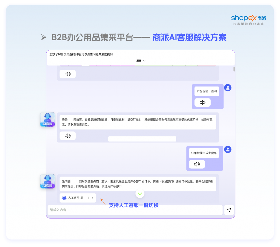二、 商派AI智能客服:嵌入办公用品采购全流程的智能助手