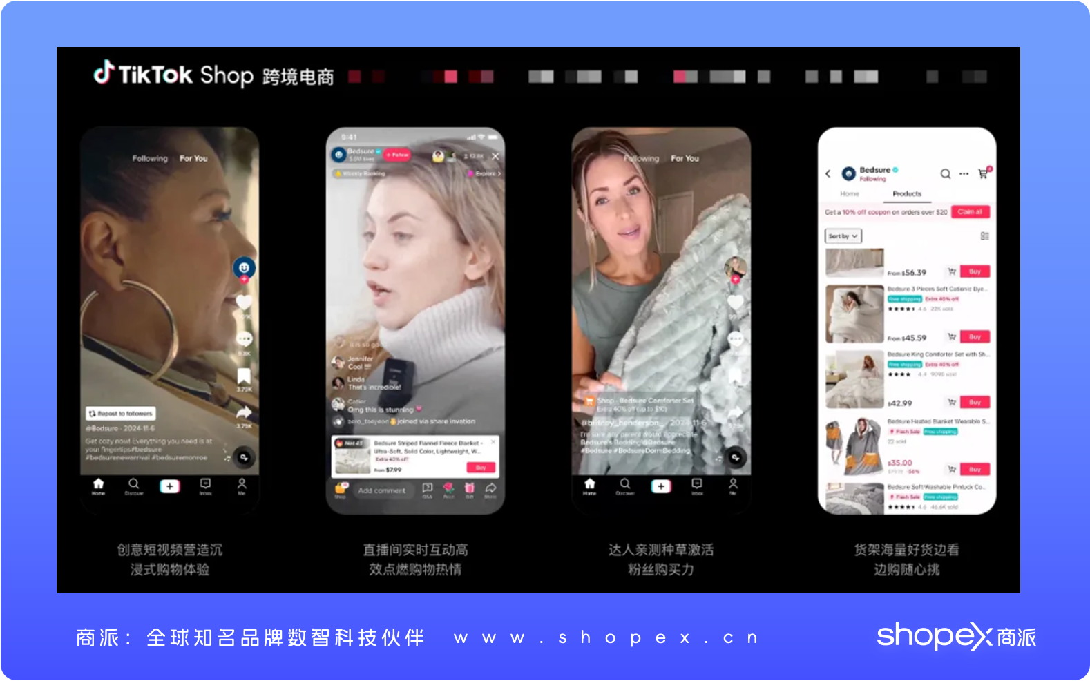 TikTok Shop在美国市场采用的 “展示,而非说教” 策略正迅速改变消费者的购物习惯。创作者通过15秒短视频直观展示服装试穿或产品使用场景,直接将商品链接嵌入视频下方。这种模式有效抓住了美国消费者的注意力,将传统电商的“人找货”转变为 “货找人”。