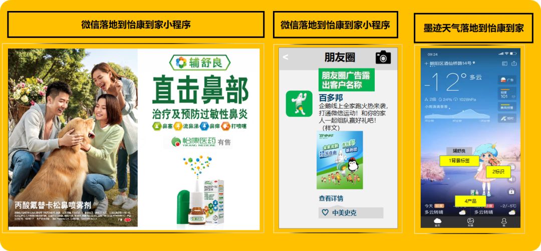 药企合作引流:例如辅舒良和百多邦等药企都跟怡康到家展开了合作,合作的广告落地页面就是怡康到家的小程序和APP。