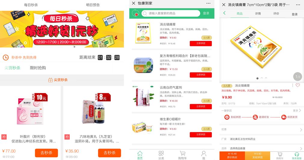 2、 通常我们在药店买药很少有优惠,但在怡康到家APP上你可以抢新人优惠券,参加每天的秒杀和拼团活动来买药,能省下一大笔钱。