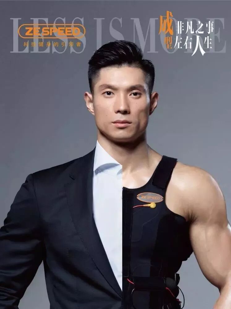 在上海市长宁区华山路1220弄6号绅公馆三楼的文化墙上,一普体育(ZPLUS FITNESS)创始人张豪钦的一张商务照格外显眼:照片中的他双手放在腰际,半边身着西服,半边是EMS可穿戴设备——恰巧印证了他的两个身份,商业新秀与健身教练。