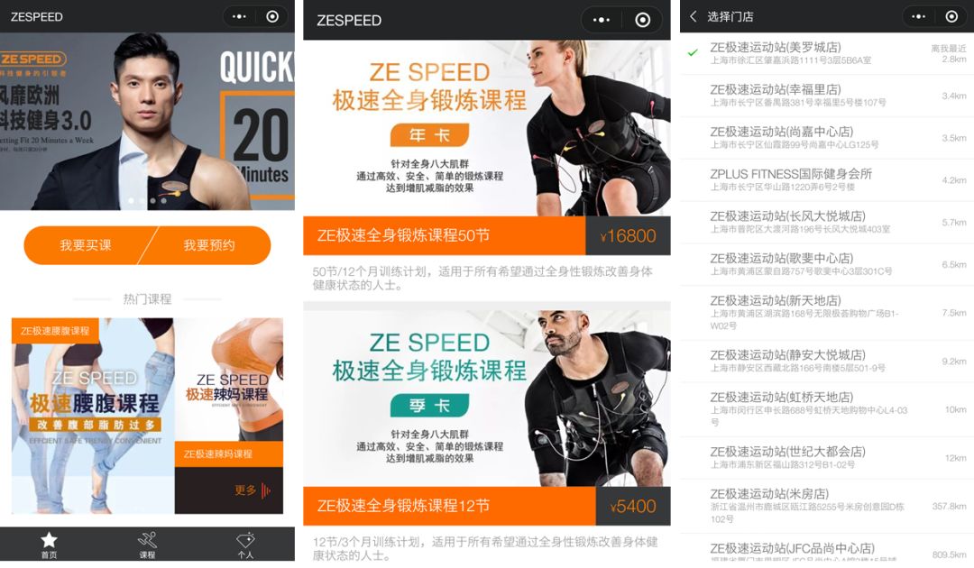 现如今,健身微信小程序已经流行起来。会员可以在微信小程序,预订老师课程、了解课程信息,分享拼团课程等;与此同时,也有很多健身品牌开始拓展更多的健身场景——例如ZESPEED 推出便携式EMS设备,将其服务从商用场景延伸进家用场景里,充分利用会员的碎片化时间进行健身。