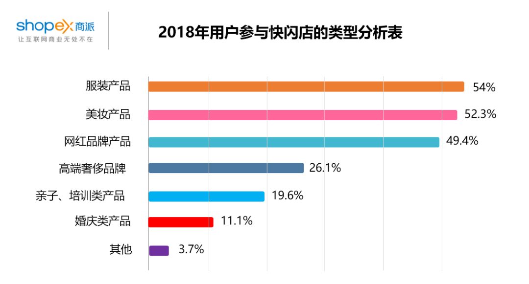 从2018年用户参与快闪店类型分析表中看出,大部分用户对于服饰类、美妆类和网红品牌的快闪店参与度更高。