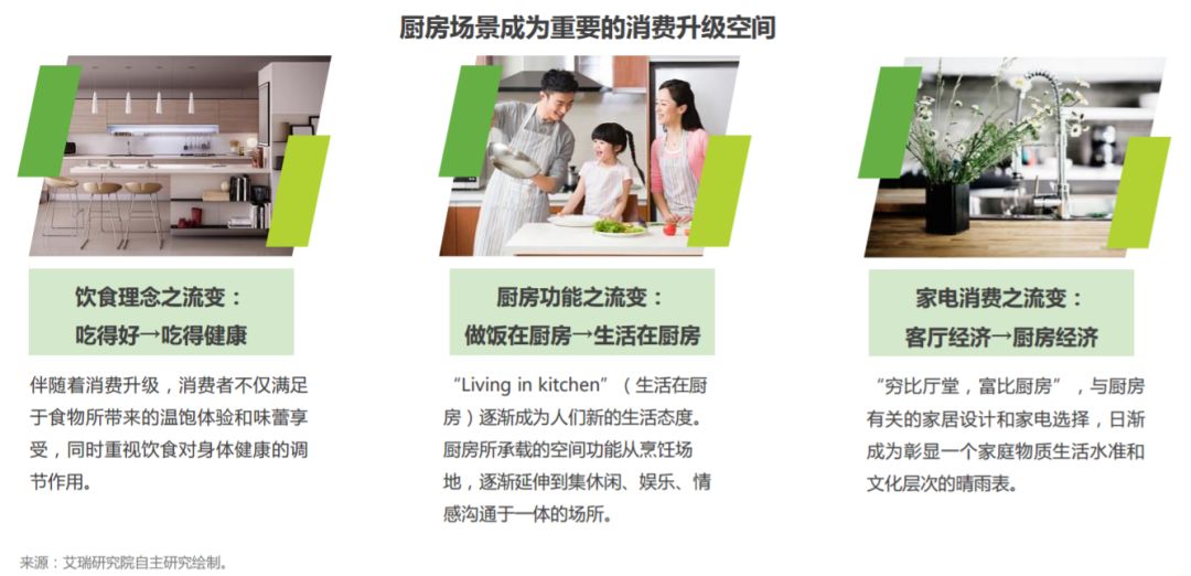 家电企业的稳定增长也跟中国的“消费升级”有莫大关系。当下消费者更加注重饮食对身体健康的调节作用,愿意将更多的钱花费在饮食健康上。厨房功能也发生了一定的变化,从传统的“做饭在厨房”向“生活在厨房”转向,所以中国家电消费正不断从过往的“客厅经