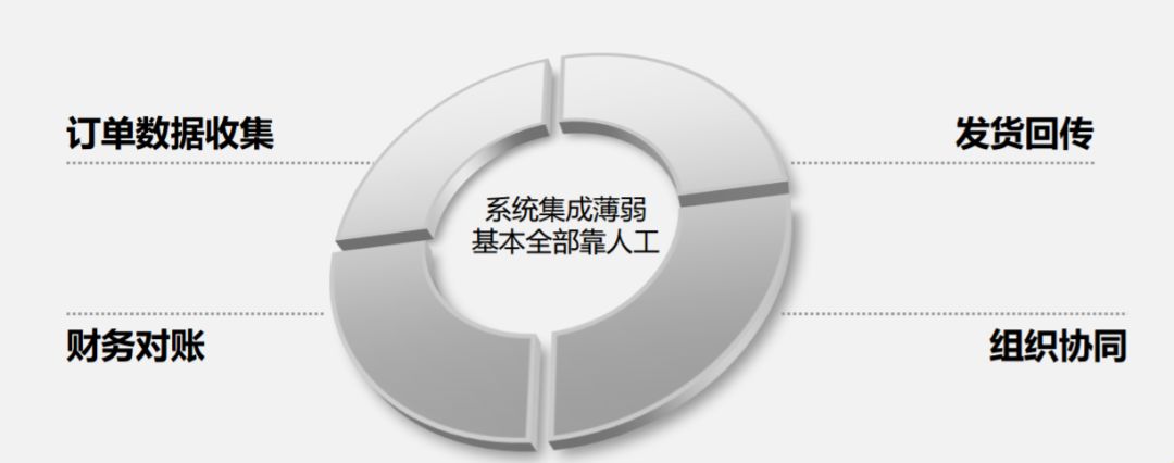苏泊尔零售终端众多,线上销售除自营官网外,也覆盖了天猫、京东、苏宁等主流电商平台。但是苏泊尔电商业务所使用的各个系统之间的集成度比较薄弱,特别是苏泊尔还有一些经销商代运营的店铺需要管理。不同类型,不同平台的订单、库存、账单、物流等数据的导入导出及整理都需要依靠人工操作,整个电商业务流程的运营效率还有很高的提升空间。